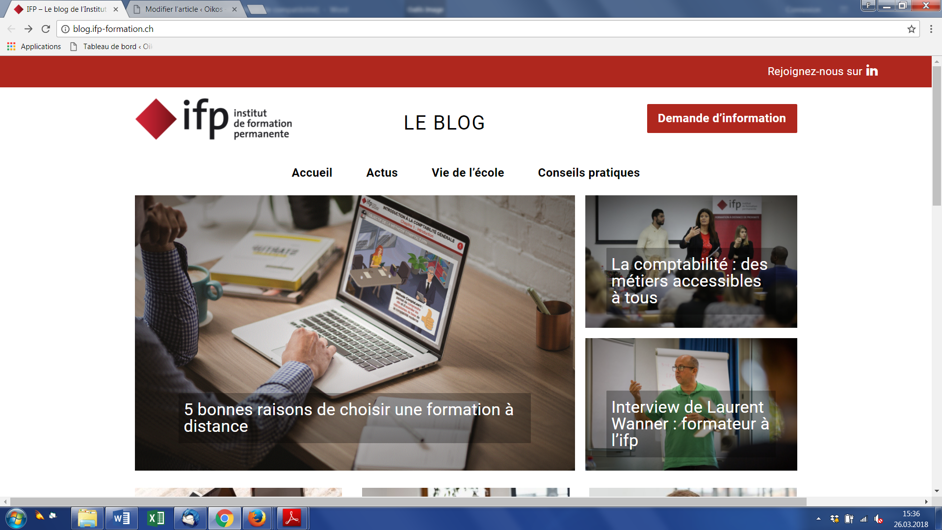 Ce blog devrait encore renforcer l’image de l’ifp comme acteur incontournable de la formation en Suisse romande et nous fournir un peu plus de notoriété. De plus, c’est un outil précieux pour crédibiliser encore plus notre discours commercial.