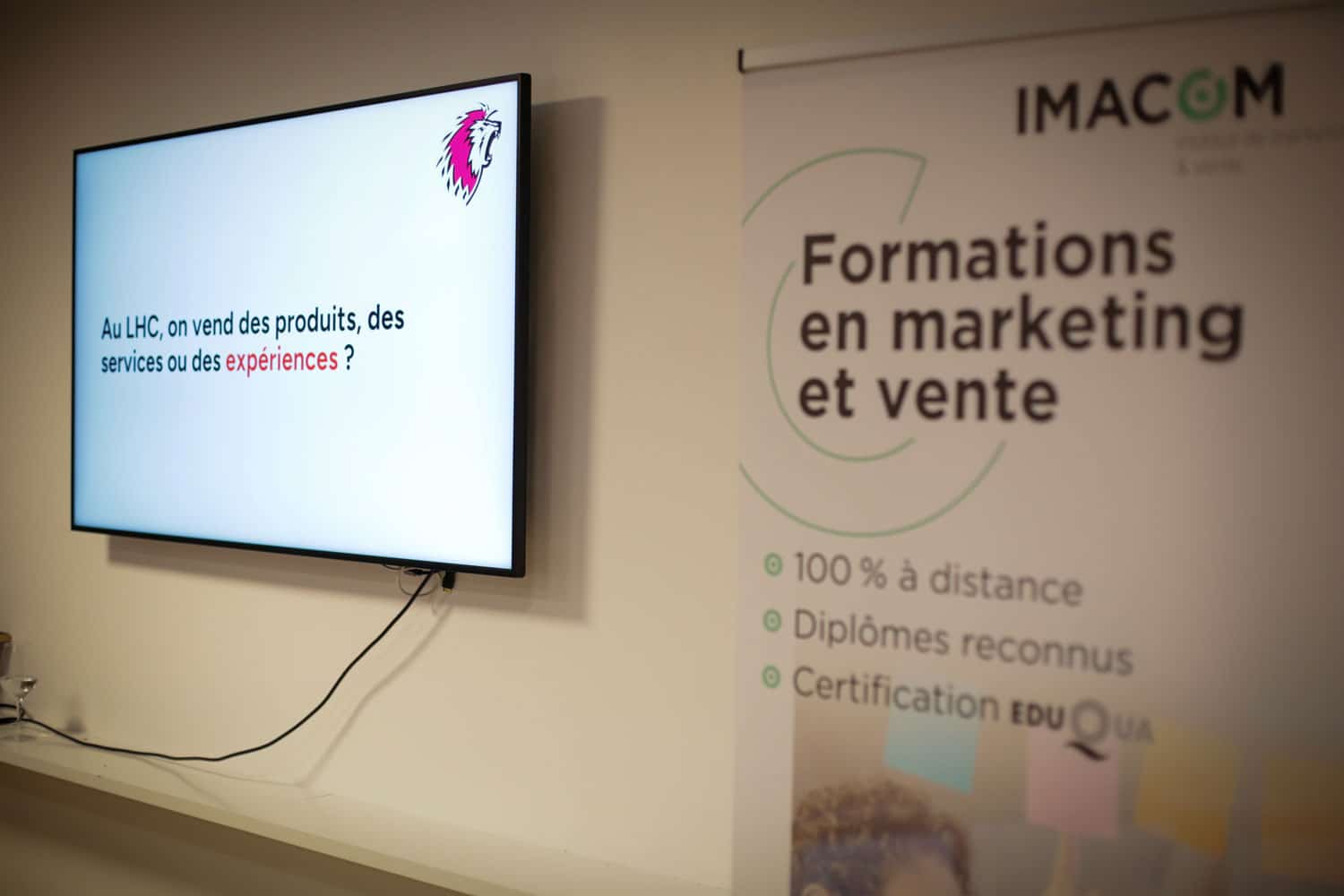 Pour cette nouvelle rencontre annuelle, l’IMACOM a organisé pour ses étudiants un événement à la Vaudoise aréna où ils ont pu échanger avec Chris Wolf et Yan Paschoud, CEO et directeur marketing du Lausanne Hockey Club. Cette soirée d’échanges était l’occasion de mettre des images sur de l’abstrait. De transformer la théorie des cours en pratique. De comprendre concrètement comment une stratégie marketing se déploie, comment une marque sportive se construit et comment un club, le LHC en l’occurrence, peut créer de la valeur bien au-delà du seul volet sportif.