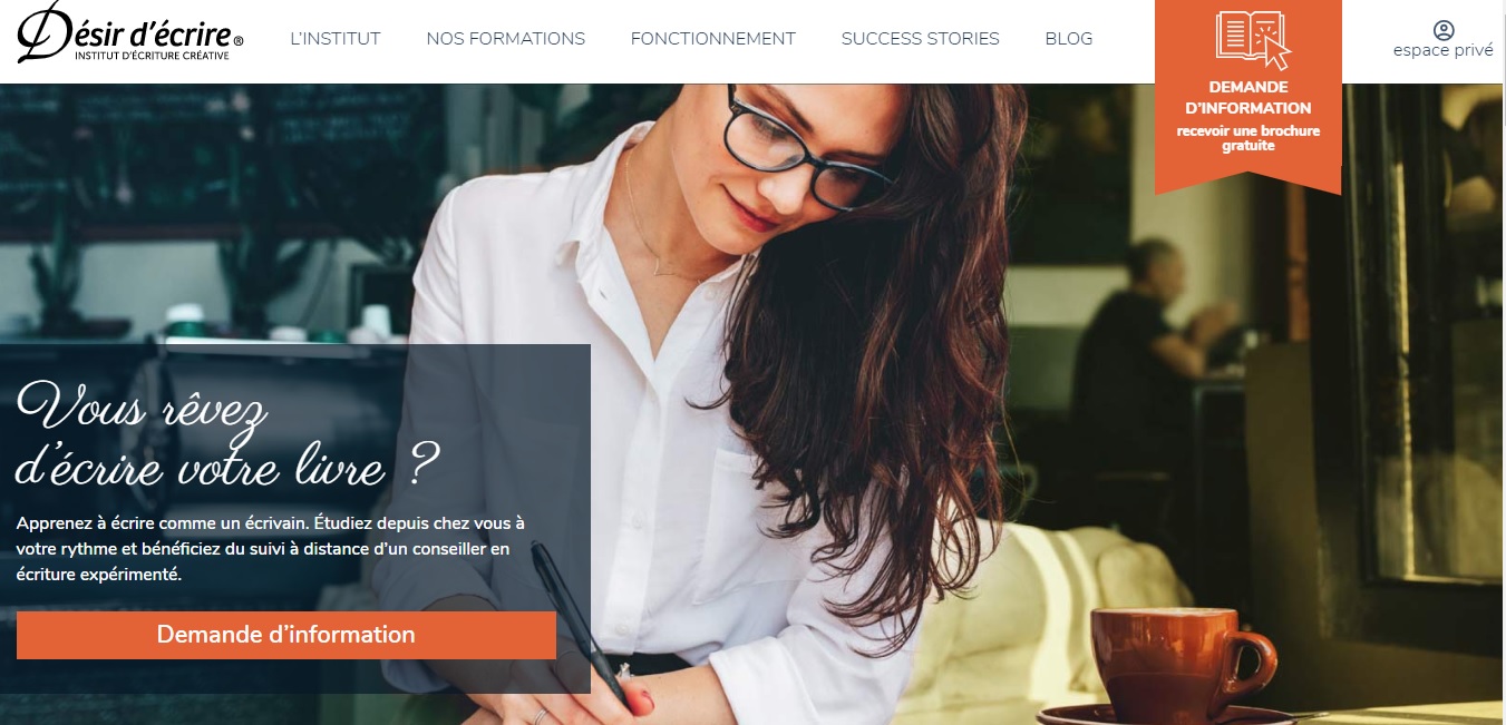 Le nouveau site web Désir d’écrire est en ligne depuis ce matin. Beaucoup plus esthétique et inspirant, il met clairement en valeur nos 3 nouvelles filières Roman, Récit de vie et Généraliste. Il met également à l’honneur notre expérience de presque 10 ans au travers de nos nombreuses « success stories » et tous nos étudiants publiés. Ceci devrait sans nul doute permettre de susciter de nombreuses nouvelles vocations !