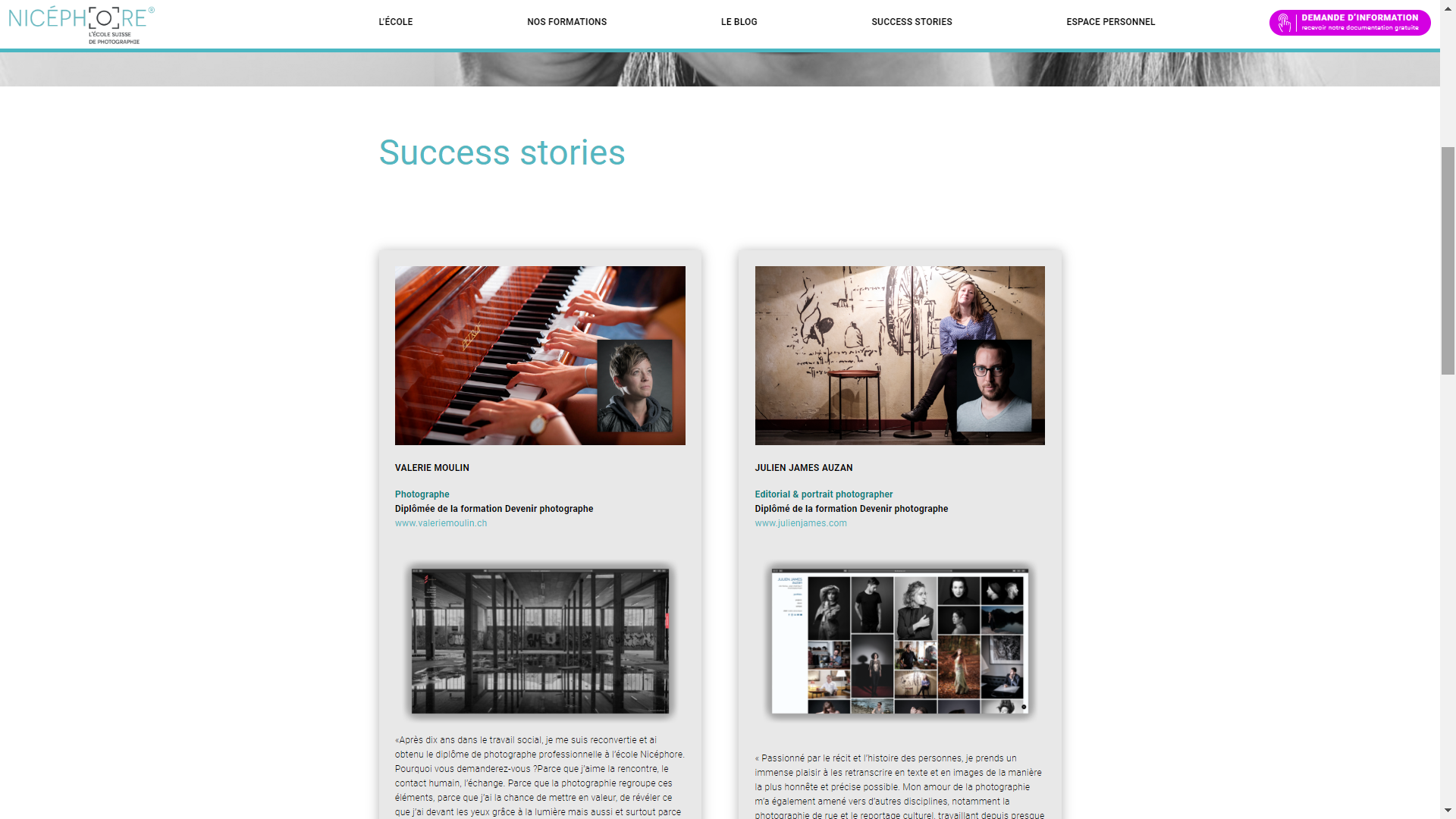 Notre nouvelle section Success stories est en ligne sur le site Nicephore ! On y découvre une galerie détaillée des parcours professionnels de certains de nos diplômés. C’est une rubrique importante pour l’école car elle permet ainsi à nos futurs étudiants de pouvoir concrètement se projeter et entrevoir les débouchés après leur formation chez Nicephore. Cette section est bien entendu évolutive et va s’enrichir de nouveaux parcours au fil des mois à venir…